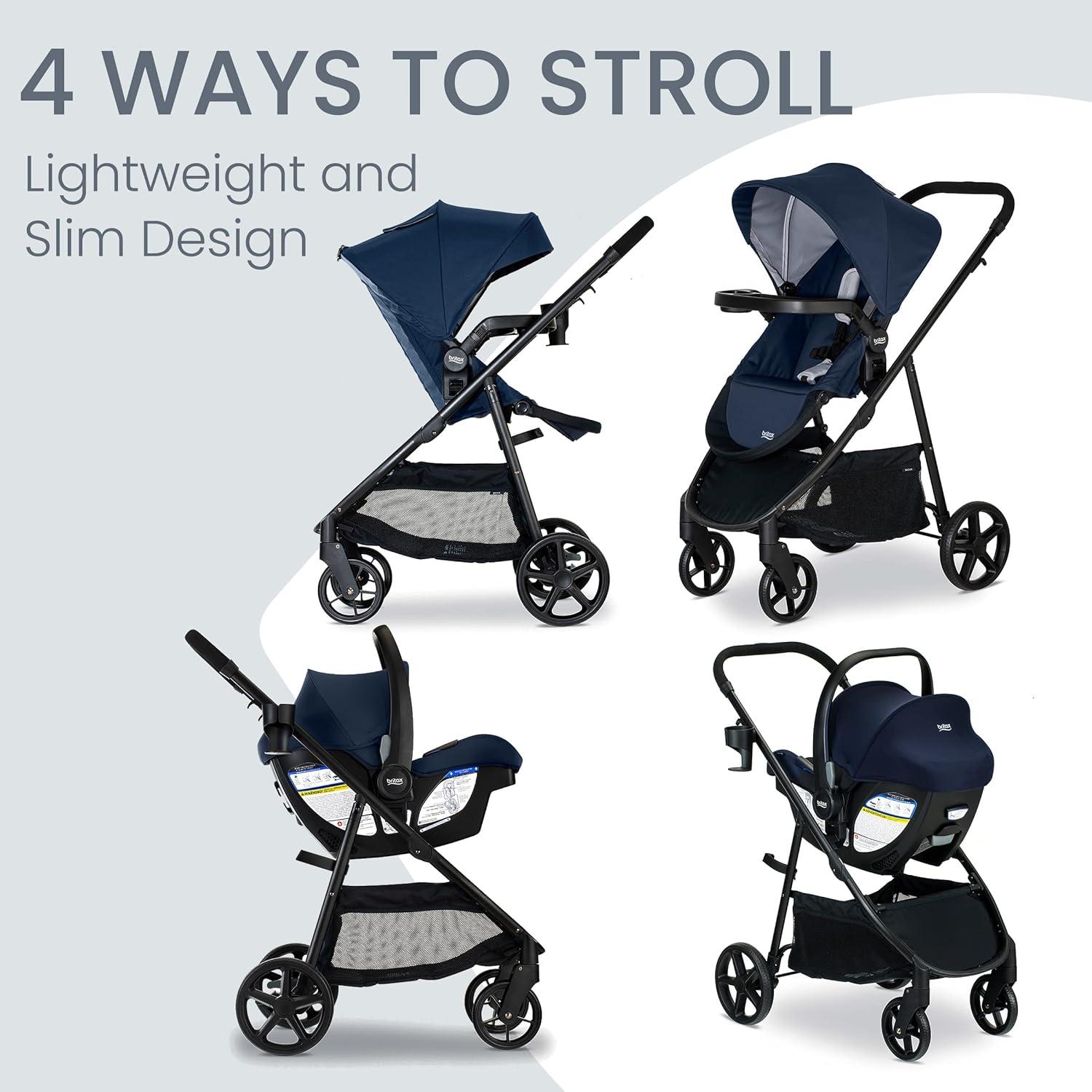 Britax Willow Brook Baby Travel System, Infant Car Seat and Stroller Combo with Aspen Base, ClickTight Technology, RightSize System and 4 Ways to Stroll, Navy Glacier(Onyx Glacier)