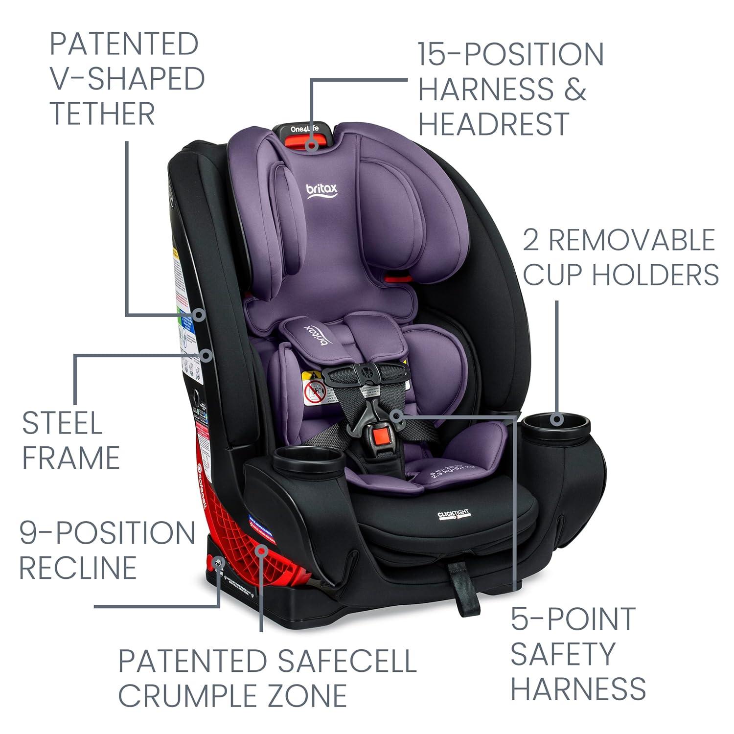 Britax One4Life Convertible Car Seat, 10 Years of Use from 5 to 120 Pounds, Converts from Rear-Facing Infant Car Seat to Forward-Facing Booster Seat, Machine-Washable Fabric, Iris Onyx(Raven Black)