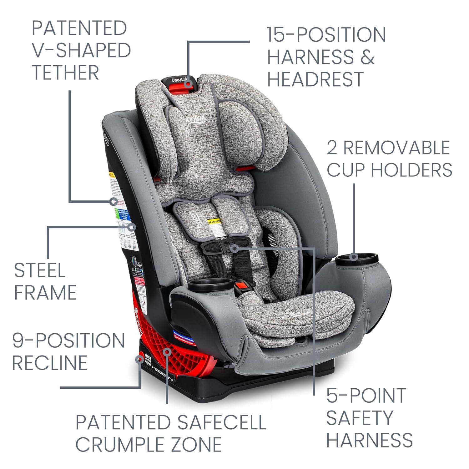Britax One4Life Convertible Car Seat, 10 Years of Use from 5 to 120 Pounds, Converts from Rear-Facing Infant Car Seat to Forward-Facing Booster Seat, Machine-Washable Fabric, Onyx(Glacier Graphite)