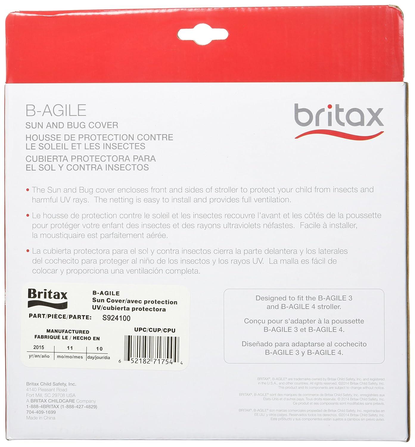 Easy to install, the well ventilated Britax B Agile/B Free/Pathway Sun and Bug Cover encloses the front and sides of your Britax Stroller to shield your baby from insects and the harmful UV rays of the sun. Compatible with single B Agile, B Free and Pathway Strollers.